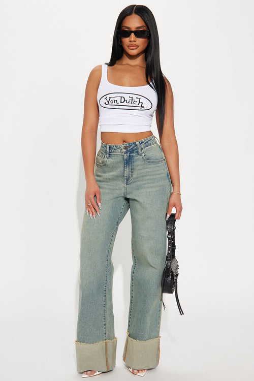 Well Suited Cuffed Stretch Wide Leg Jeans - Vintage Wash -